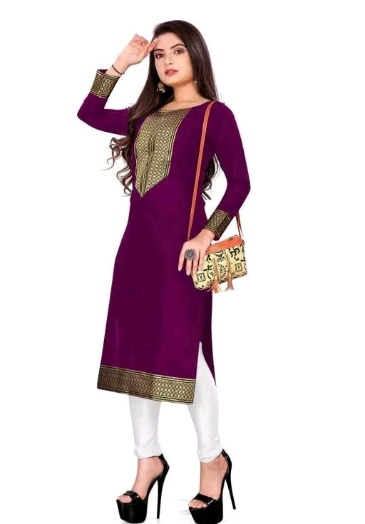 Stylish Women's Purple Straight Kurti with Golden Embroidery | Ethnic Wear for Festivals & Parties